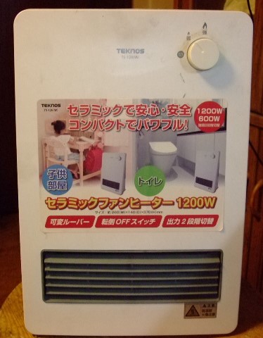エアコンの効きが悪いので、灯油ファンヒーターで暖房しています。